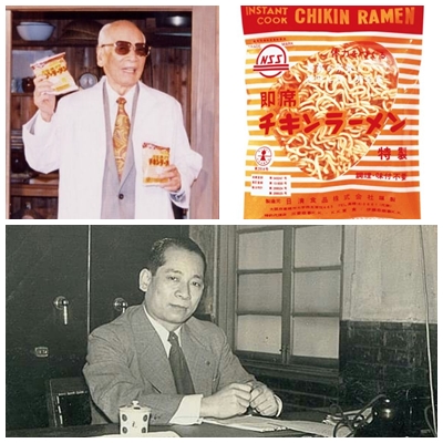 1958년 세계 최초의 인스턴트 라면인 '치킨 라면'을 개발했고, 1961년 상표등록, 1963년 닉신 식품은 도쿄 증권거래소와 오사카 증권거래소 모두 2부에 상장되는 쾌거를 이룬다.