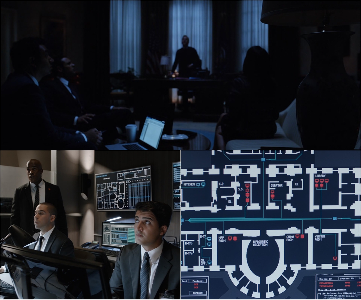 업무 스케줄에 대해 대화하던 도중 갑자기 정전이 된다. 누군가 백악관을 해킹한 것이다. 그러나 대통령의 컴퓨터에서는 어떤 정보도 빠져나가지 않았다. 백악관에서는 누구의 소행인지 밝히기 위해 애쓴다.