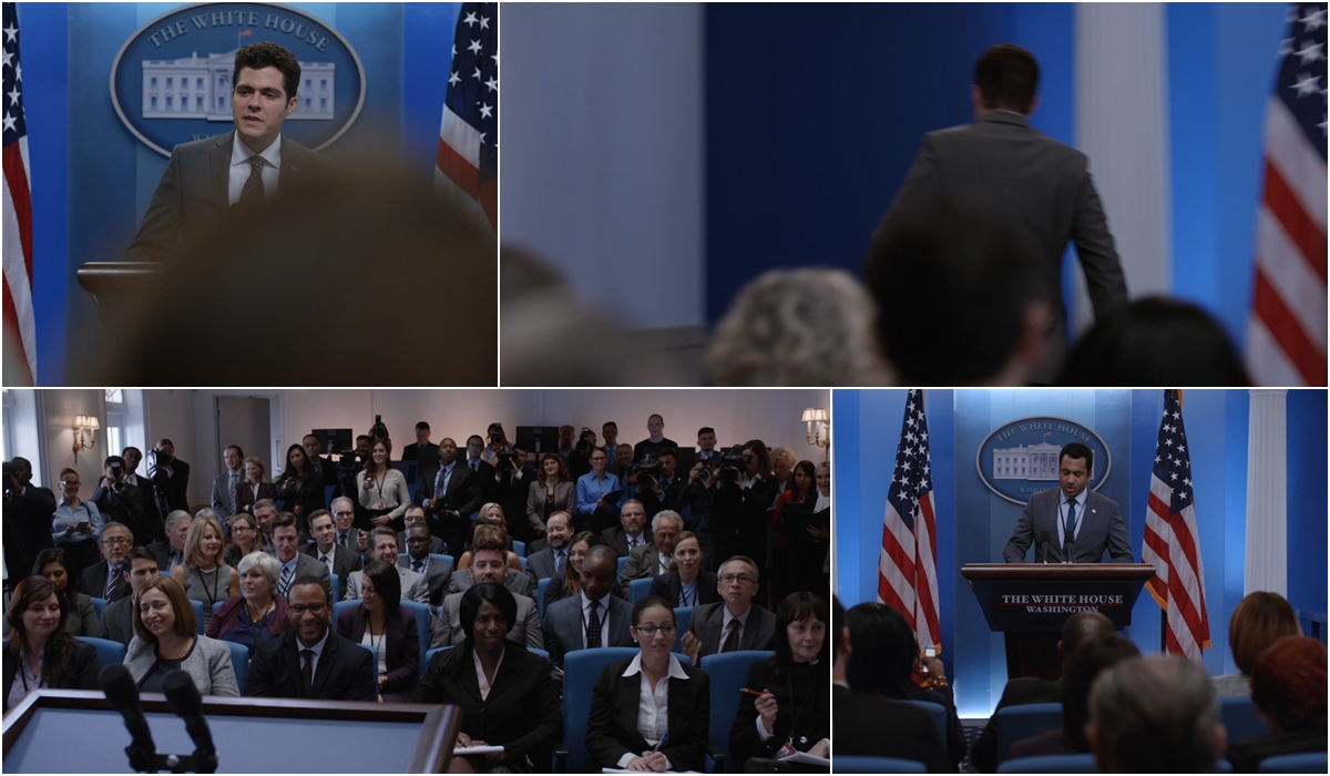 국회 테러로 인해 대변인과 상관들이 모두 죽었다. 때문에 제3차관보였던 카터가 갑자기 대변인이 되었다. 카터는 버벅거리며 기자회견을 한다. 기자회견을 망친 그에게 연설문 담당인 세스가 조언을 한다.