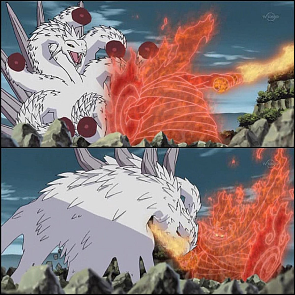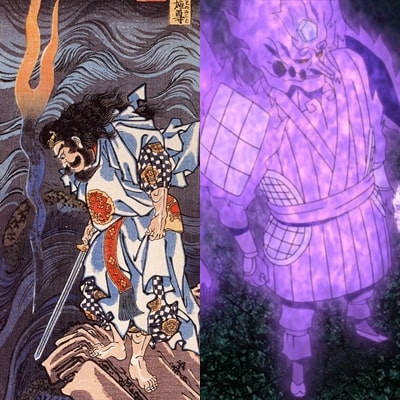 스사노오가 토츠카노츠루기(토츠카의 검)으로 야마타노오로치를 쓰러트린 장면이 나루토에서도 비슷하게 묘사되었다. 여기에서는 야타의 거울도 등장한다.