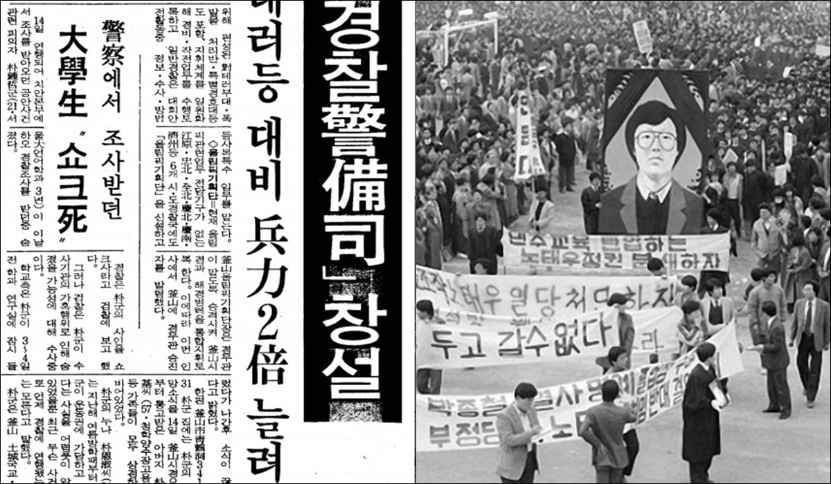 1월 16일 치안본부장 강민창의 기자회견("책상을 탁치니 억하고 죽었다")이 열렸다.