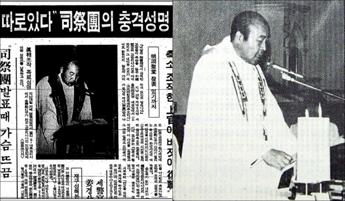 1987년 5월 18일 김승훈 신부는 '박종철 고문치사사건의 진상이 조작되었다'는 제목의 사제단 성명을 냈다.