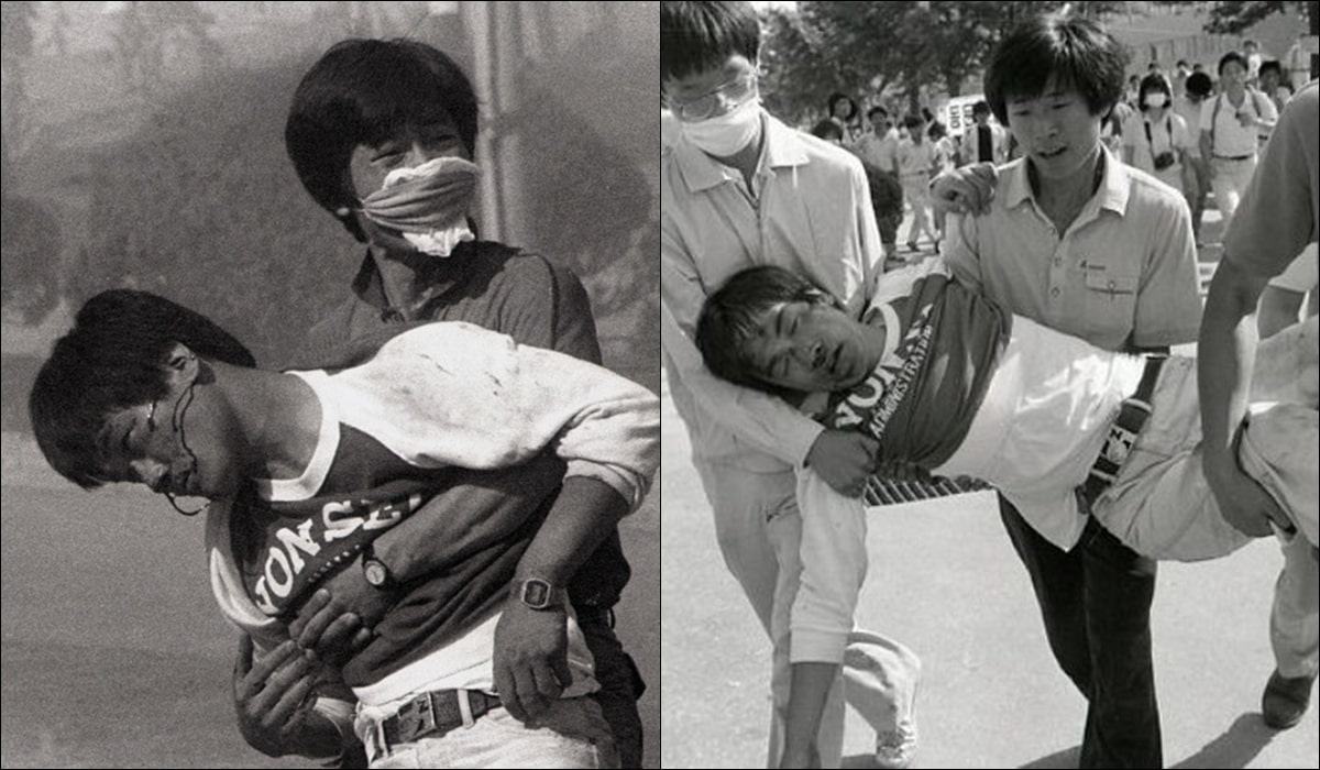 최루탄에 맞아 피를 흘리며 쓰러진 이한열 열사를 일으켜 세워 부축한 학생이 있었다. 이 모습을 로이터통신 특파원 '정태원 기자'가 포착했다.