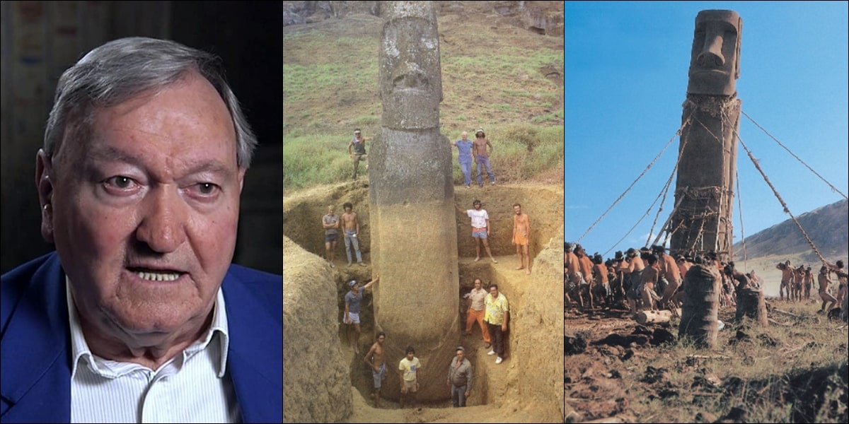 1956년 노르웨이의 '헤이엘다르'는 12톤의 모아이를 나무로 된 도구로만을 사용하여 섬 주민 180명과 한 달 만에 바닥가까지 옮기는 데 성공한다. 이스터섬의 주민들과 다시 면담하고 조사한 결과 모아이 석상은 '짧은 귀' 부족과 '긴 귀' 부족에 의해 세워졌다고 말했다.