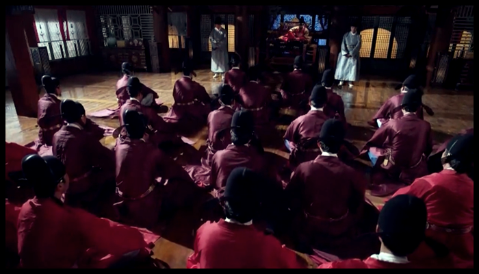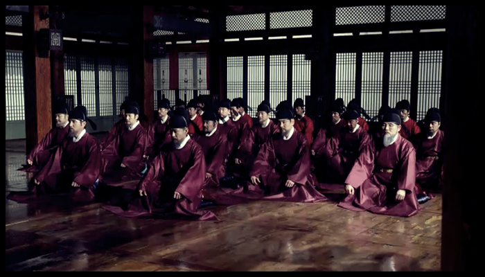 이날 모든 신하들은 땅에 엎드려(이성계가 앉아서 받기를) 굳이 청하였고, 이에 앉았다고 기록이 되어있다.