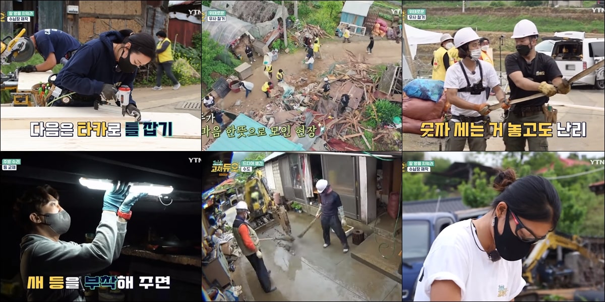 그렇게 수도설치와 전등교체, 수납장 제작, 장판교체, 축사 철거, 문 수선 총 6가지 수선을 했다. 고쳐듀오뿐만 아니라, 대한적십자 봉사자분들과 제작진들이 모두 함께 힘을 합쳤다.