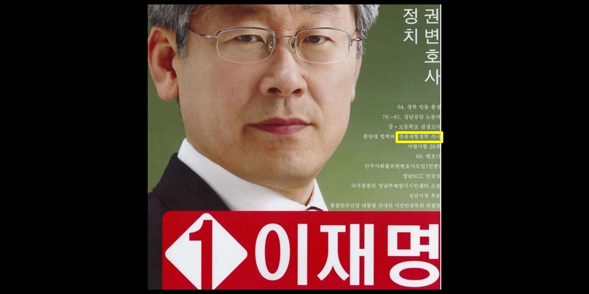 이재명은 경원대학교(現 가천대학교)에서 석사학위를 취득했다.