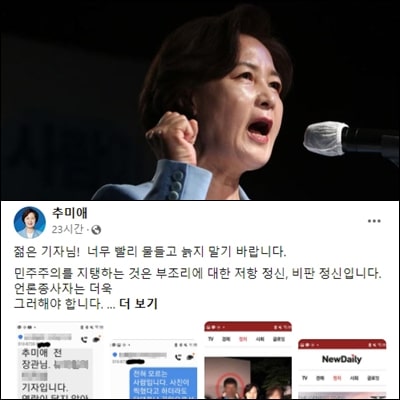 그런 추미애 前 법무부 장관은 보도한 매체 기자의 실명과 전화번호를 공개하며 "악의적 보도"라고 반발했다.