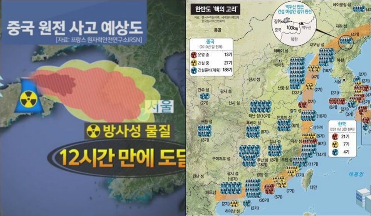 문제는 이 원자력발전소들은 한국 서해와 맞닿은 중국 동해안에 위치한다는 것이다. 즉, 서해 건너편에 세계 최대 원자력발전소 벨트가 형성될 예정이다.