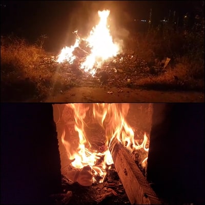 왼쪽의 사진의 경우에는 소각하는 곳을 만들었는지, 아니면 어떤 곳이 허물어져 그곳을 소각장으로 사용하는지 잘 모르겠지만 아무튼 여기에서 소각을 하고 있었다.