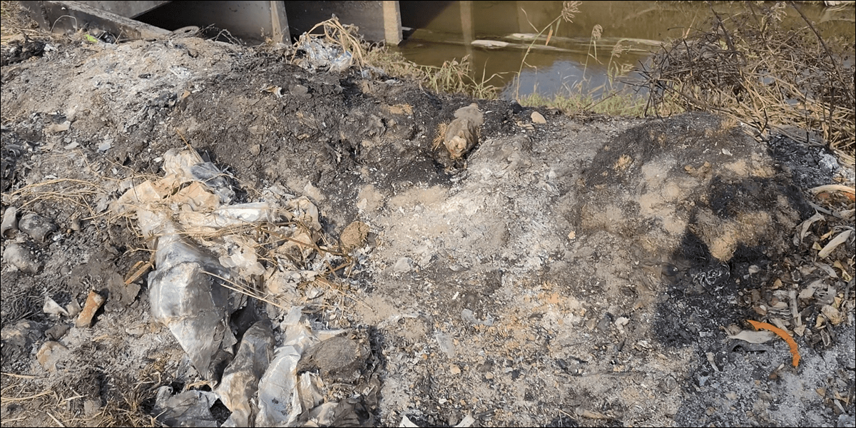 하천 옆에 있는 불법 쓰레기 소각 현장이다. 너무 많은 양이라서 끔찍할 정도다.