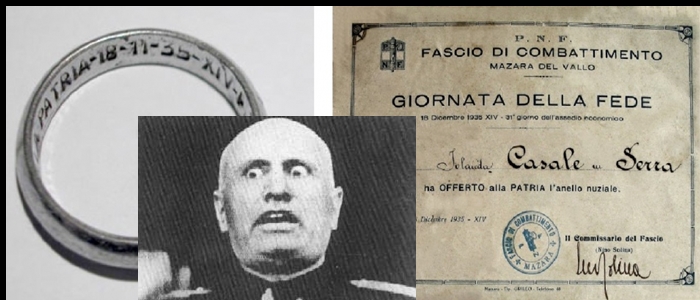 제2차 세계대전에서 이탈리아가 패배하자, 이탈리아 국민들은 그제야 후회를 했다. 자신들의 소중한 물건 결혼반지를 파시스트 독재자에게 갖다 바쳤다는 등, 부끄러움을 감추지 못했다고 한다.