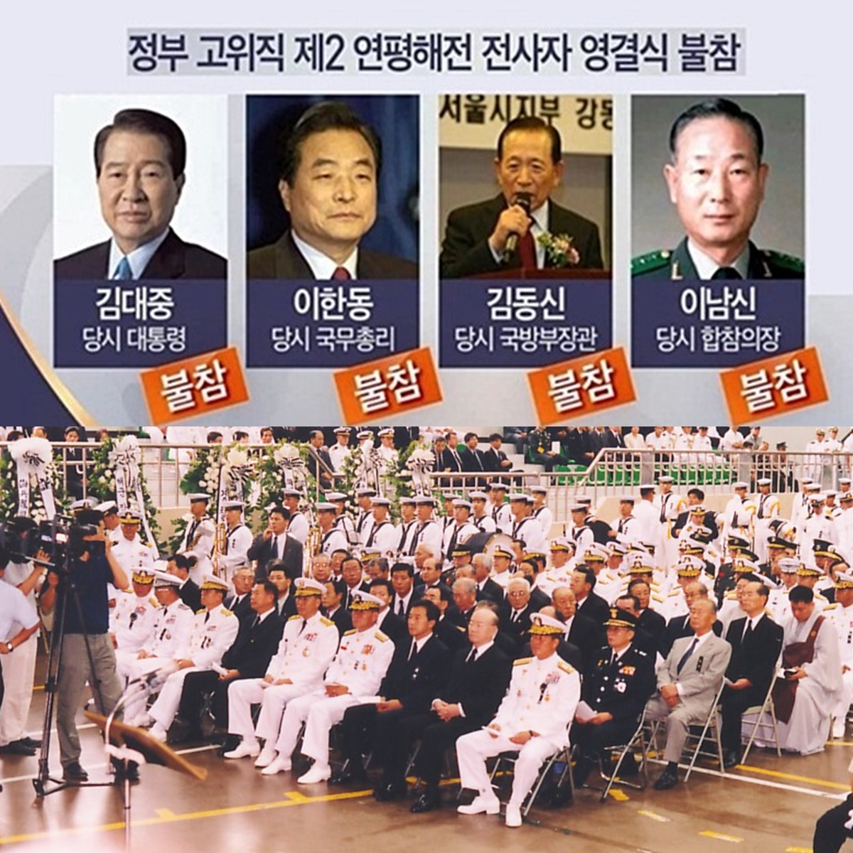 제2 연평해전 전사자 영결식에 전두환 前 대통령은 참석했다. 하지만 그 당시 김대중 대통령, 이한동 국무총리, 김동신 국방부장관, 이남신 합참의장은 참석하지 않았다.