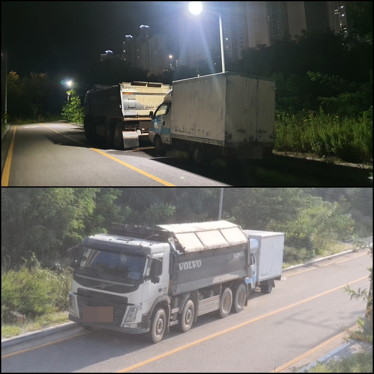 차량 3대의 주인은 실거주자가 아니며, 흰색 차량을 타고, 덤프트럭을 주차하기 위해 매일 이런 행동을 하고 있다.