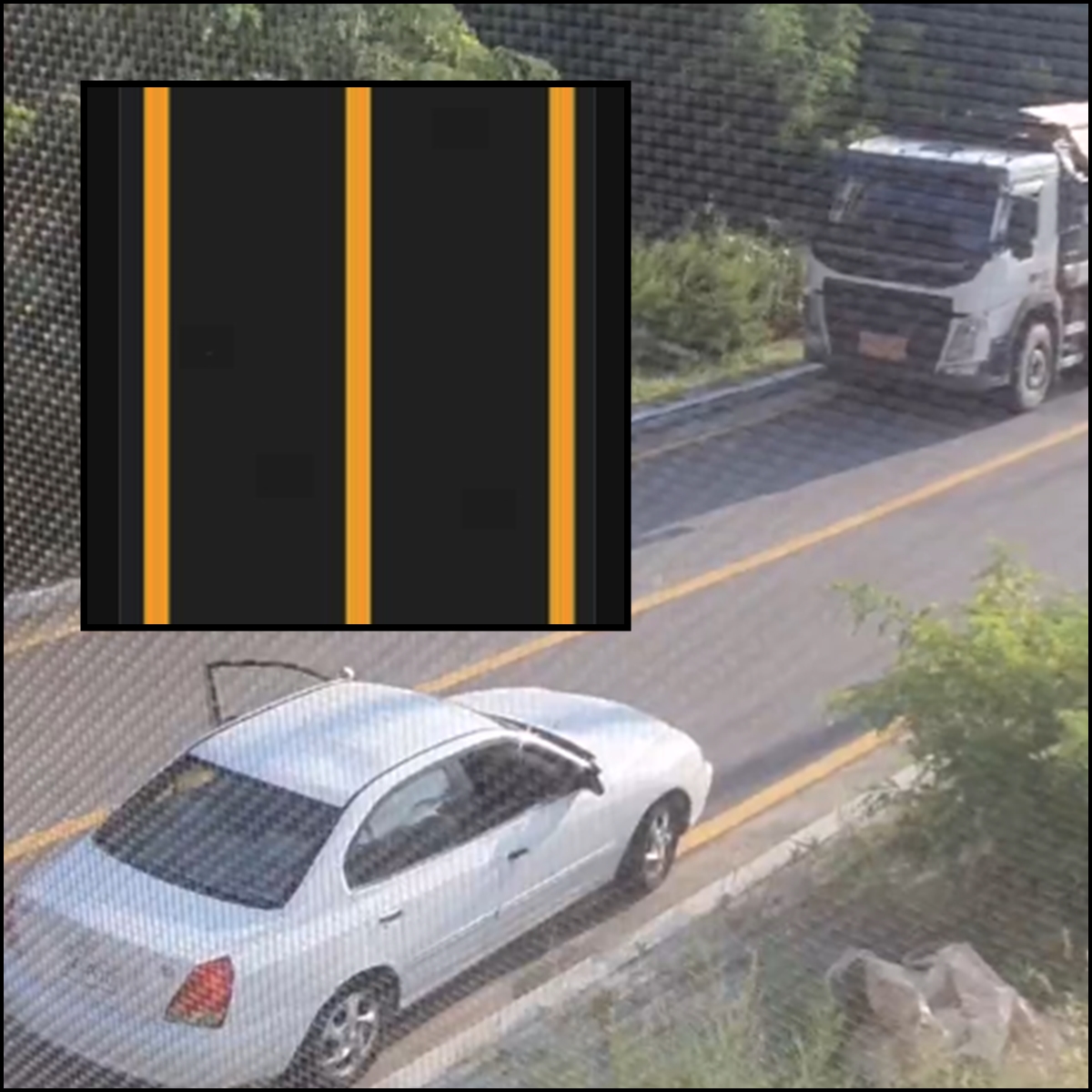 택배차량 항시 주차(24시간, 펑크 난 상태), 흰색 차량(약 04시 ~ 17시), 덤프트럭(오후 17시~새벽 04시)