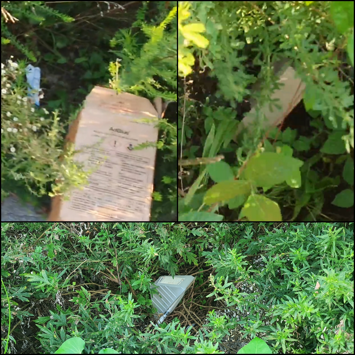 덤프트럭이 주차한 곳, 옆쪽에는 풀숲에 쓰레기들이 이렇게 있다. 저번에는 투척하는 장면도 봤다.