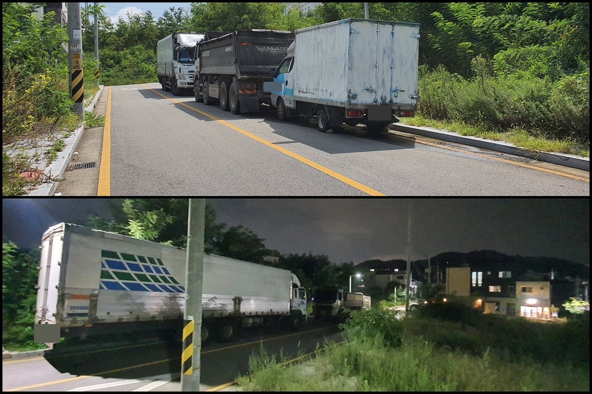 3개월 전만 해도 주택이 하나둘씩 생기고 있는 탁 트인 전망에 깔끔한 동네였다. 그런데 어느 날 대형차량들이 2차선 도로에 주차를 하기 시작했다.